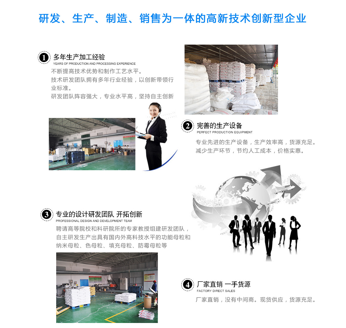 雄縣雄陽新材料科技開發有限公司,屬河北省科技型高新技術企業、公司始建于2006年,坐落于京、津、冀發展核心位置的河北省雄安新區雄縣,地理位置優越、發展空間充裕、交通通暢便捷。是一家以納米科技和高分子復合新材料研發、生產、制造、銷售為一體的高新技術創新型企業。我公司長期致力于生物科技領域、污水處理領域和納米高分子復合新材料的科技研發及生產,聘請高等院校和科研院所的專家組建研發團隊,精研高新領域內的高分子復合新材料和納米新材料的國內外先進技術,自主研發生產出具有國內外高科技水平的環保復合污水處理材料、功能母粒、納米母粒、色母粒、填充母粒、防霉母粒等,廣泛應用于國內外污水處理領域以及塑料塑膠領域。在滿足市場需求的同時,把握行業發展趨向,創造綠色環保的高科技產品,不斷地升級創新,達到同行業先進科技水平。公司本著誠信共贏、開拓創新的理念服務于社會,嚴格的管理、專業的設計、優質的服務是我們永遠不變的宗旨!